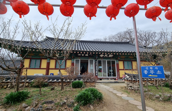 계룡산 신원사 전각배치도 1.대웅전 2.중악단 3.천수관음전 4.범종각 5.벽수선원 6.천왕문 7.노사나전 8.영원전 9.오층석탑 10.석탑 11.독성각 12.부도전 13.일주문 14.안내소 15.휴휴당 16.포대화상 17.명상쉼터 18.해우소 19.무량수각 20.매화당 21.종무소(일로향각) 22.선다원(불교용품) 23.소대 24.공양간(상락당) 25.공양간(세심당) 감로수각 약수대 주차장 안내문 풍순이와 고양이 종무소(일로향각) 신원사의 모든 행정업무를 담당하는 종무소이다 종무소앞에서 선명하게 보이는 와불