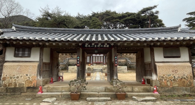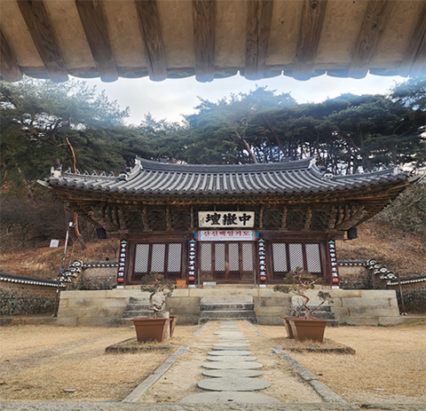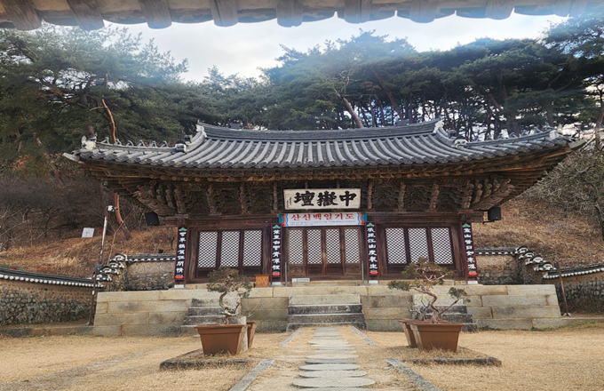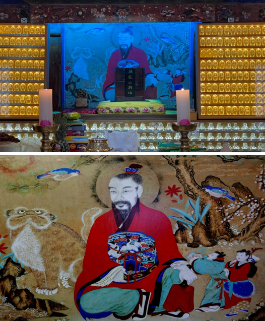 중문간채 뒷면 편액인 '제대산왕강림도량'은 '산에 깃든 모든 큰 산왕님들이 강림하는 곳'이란 뜻이다.
