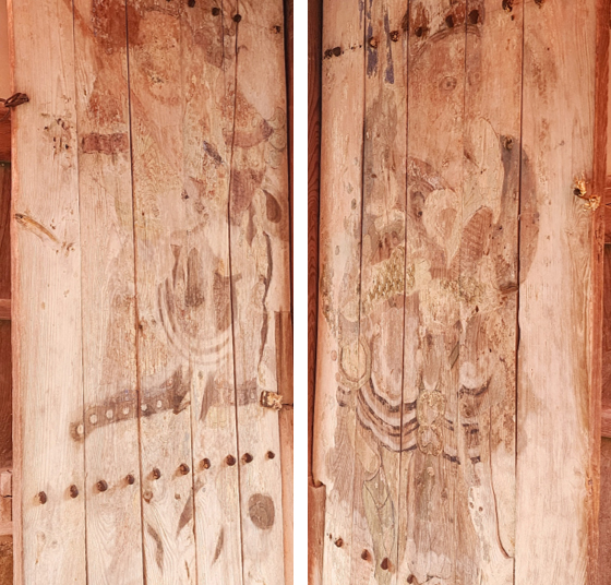 중악단 중문간채의 어칸문(御間門)에는 색채가 거의 날아간 그림이 그려져 있는데, 한쪽은 익선관을 쓰고 긴 창을 들고 있는 서방광목천왕이며, 다른 한쪽은 비파를 들고 있는 북방다문천왕이다. 대문간채의 문에도 그림이 있었지만 지금은 전혀 보이지 않는데, 그것은 동방지국천왕과 남방증장천왕으로 추정된다.