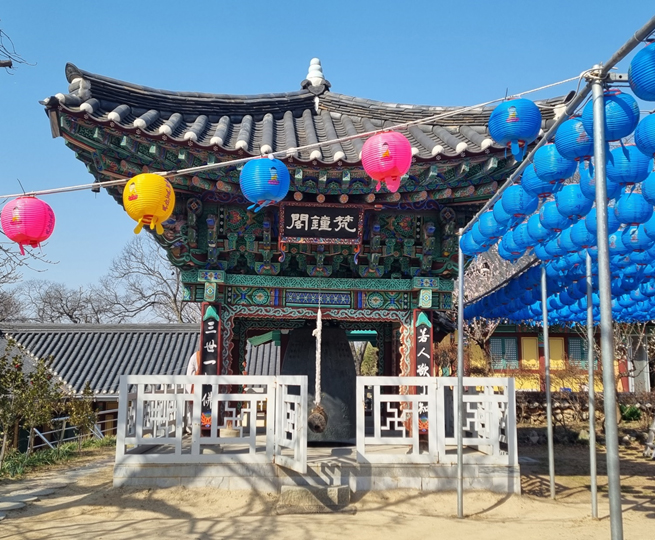 계룡산 신원사 전각배치도 1.대웅전 2.중악단 3.천수관음전 4.범종각 5.벽수선원 6.천왕문 7.노사나전 8.영원전 9.오층석탑 10.석탑 11.독성각 12.부도전 13.일주문 14.안내소 15.휴휴당 16.포대화상 17.명상쉼터 18.해우소 19.무량수각 20.매화당 21.종무소(일로향각) 22.선다원(불교용품) 23.소대 24.공양간(상락당) 25.공양간(세심당) 감로수각 약수대 주차장 안내문 풍순이와 고양이 신원사 범종각 공주 신원사 범종각은 사모지붕 형태의 건물로 불전 사물 중 범종만 비치되어 있다.다른곳과 달이 사시기도 전 운집을 알리는 타종이 있다. 신원사 범종각 편액 신원사 범종각 범종